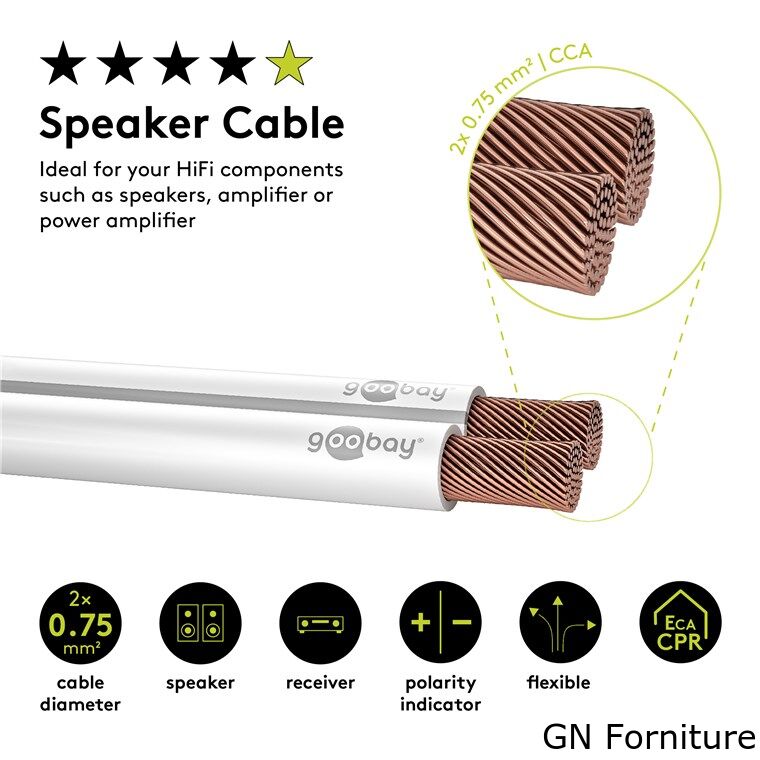 Fornito al metro, il cavo per altoparlanti Goobay hi-fi può essere assemblato da solo per la rispettiva applicazione.