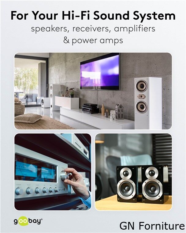 Goobay ha sempre gli accessori giusti per collegare l'elettronica di consumo come altoparlanti, amplificatori e sistemi audio. I nostri prodotti trasmettono segnali audio con la massima qualità per un suono eccezionale. Le robuste guaine dei cavi e i conduttori interni di alta qualità dei nostri cavi per diffusori garantiscono un'esperienza di intrattenimento perfetta. Semplicemente. Tutto. Ciò che serve!
