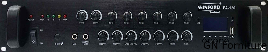 L’amplificatore Winford PA-120 è la soluzione ideale per impianti audio multi-zona in ambienti professionali come negozi, scuole o uffici. Con una potenza di 120W, supporta diffusione su 6 zone indipendenti, con uscite a 70V/100V/4-16 Ohm. Dotato di ingressi USB, Bluetooth e radio FM, permette una gestione flessibile dell’audio da diverse fonti.