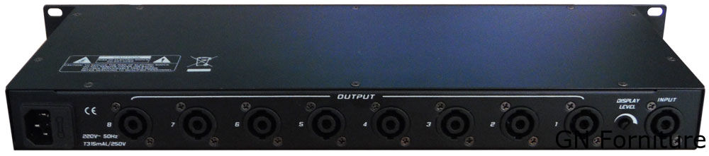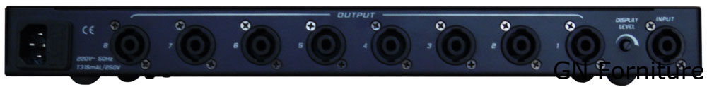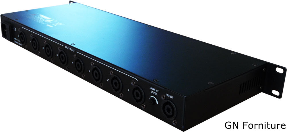 Divisore del segnale di potenza in frequenza audio con ingresso unidirezionale e uscita a otto vie, utilizzato principalmente nella trasmissione contrastiva con array multi-altoparlante, particolarmente adatto per rivenditori e altre occasioni in cui è necessario un adattamento del segnale di potenza in frequenza audio.