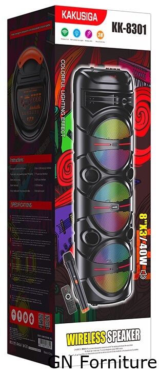 Cassa acustica portatile ricaricabile 3x8" 40W Luce LED Bluetooth/USB