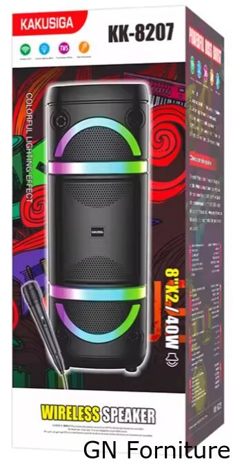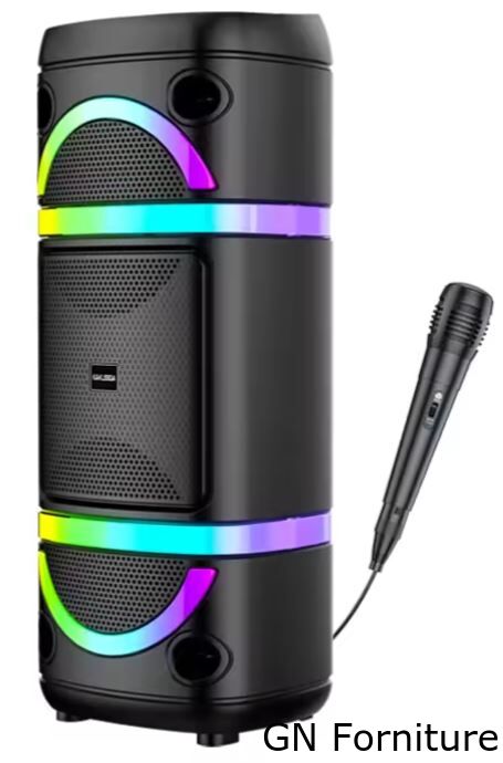 Luce LED; batteria al litio di grande capacità, durata della batteria di lunga durata; suono stereo surround dalle prestazioni eccezionali; Riproduzione da scheda SD, USB,radio, funzione Bluetooth, Dimensioni del prodotto: 270x244x693MM; Riproduzione: 3-4 ore (in condizioni di volume al 70%);