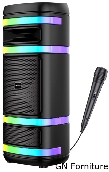 Luce LED; batteria al litio di grande capacità, durata della batteria di lunga durata; suono stereo surround dalle prestazioni eccezionali; Riproduzione da scheda SD, USB,radio, funzione Bluetooth, Dimensioni del prodotto: 270x244x693mm; Riproduzione: 3-4 ore (in condizioni di volume al 70%);