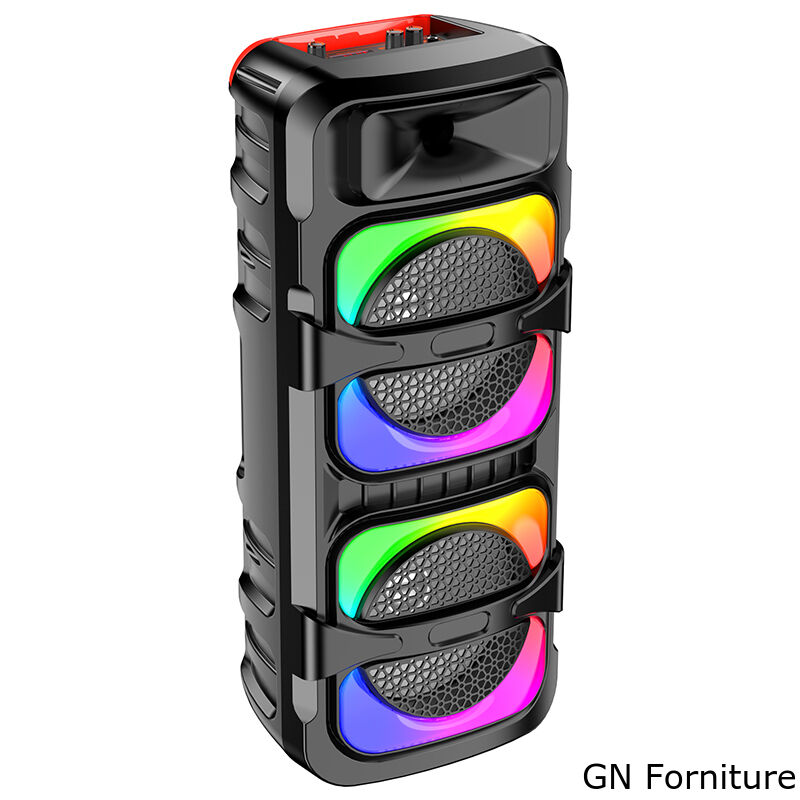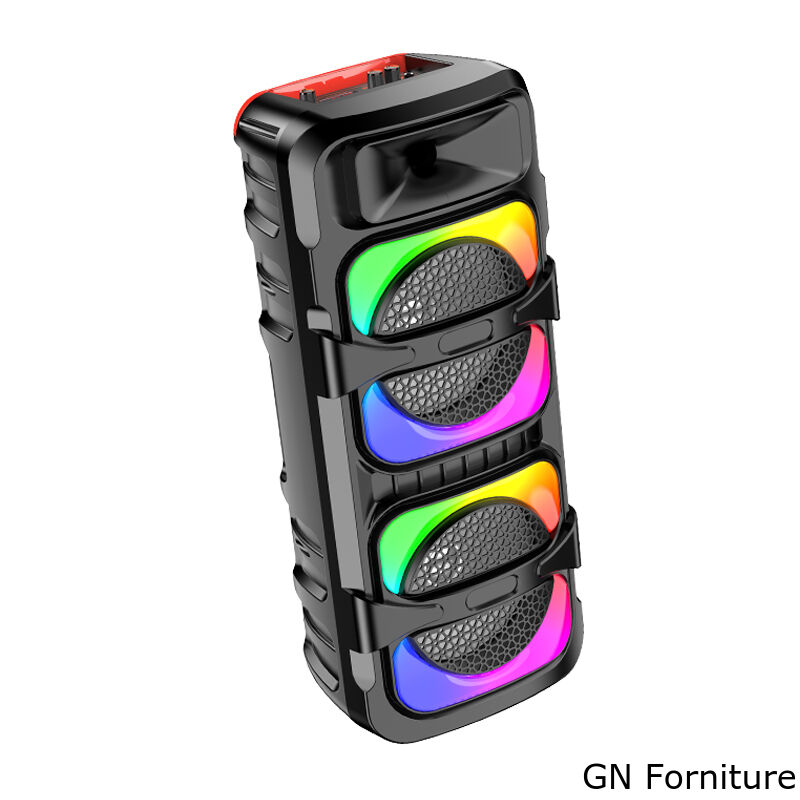 Modalità di riproduzione wireless Bluetooth, TF, FM, USB, AUX; altoparlante super da 8 pollici, effetto sonoro dei bassi travolgente; dotato di microfono karaoke per godersi la vita; luci LED fantasy, ritmo dinamico; batteria al litio ad alta capacità, maggiore autonomia; luci LED colorate, musica variopinta.