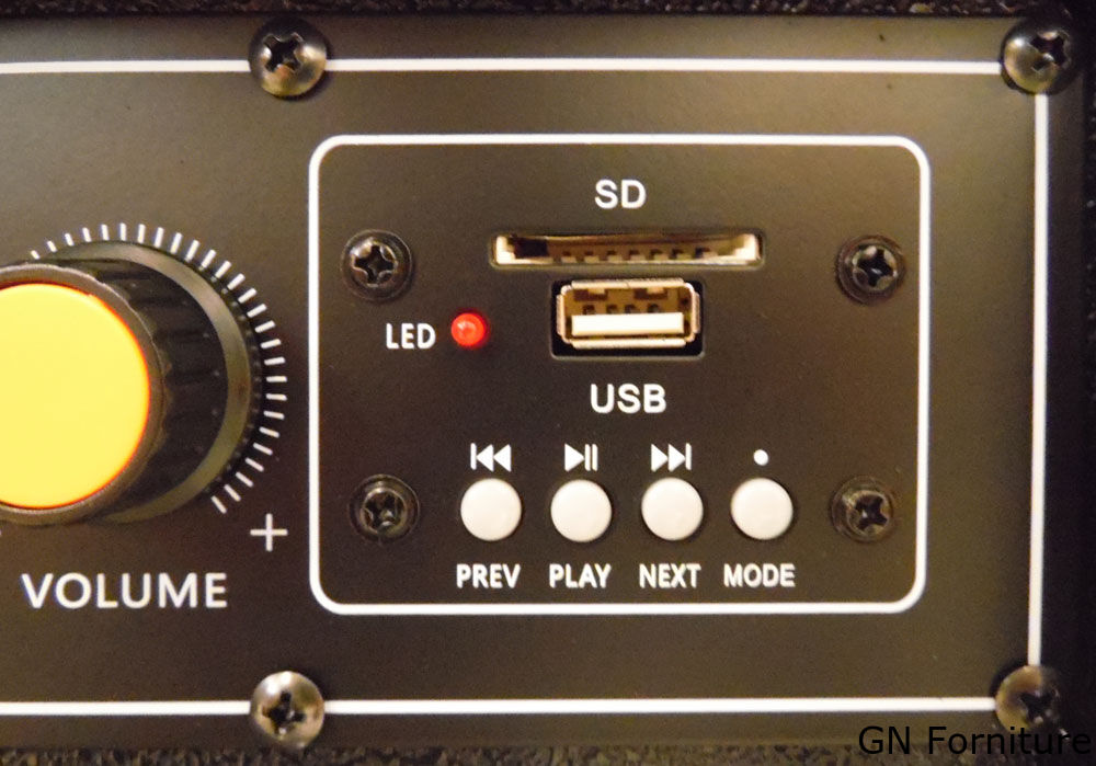 - Connessioni cassa attiva: 2 ingressi jack da 6,3mm per microfono, 1 ingresso USB, 1 ingresso SD, 1 ingresso RCA stereo
