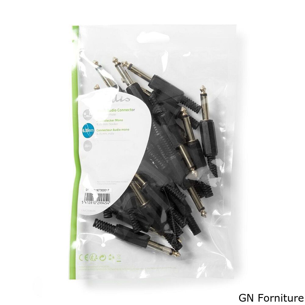 Connettore Jack Mono Maschio da 6,35 mm confezione da 25 pezzi Nero