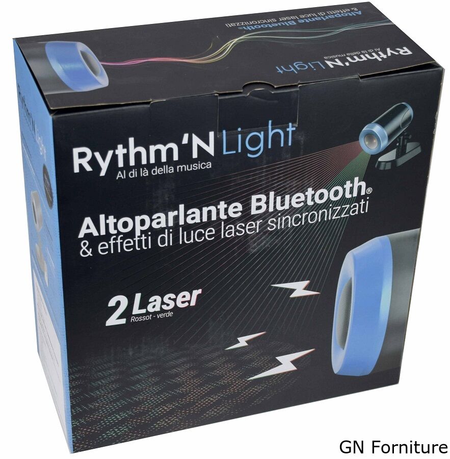 I fasci laser si muovono e sfumano a tempo di musica. La base permette di posizionarlo sia a pavimento che a parete.