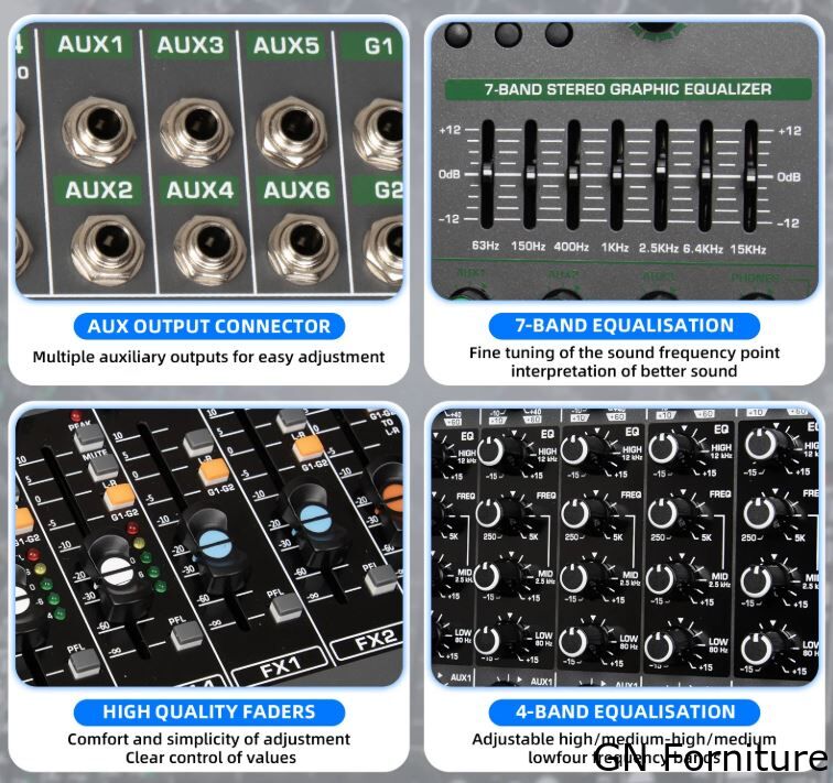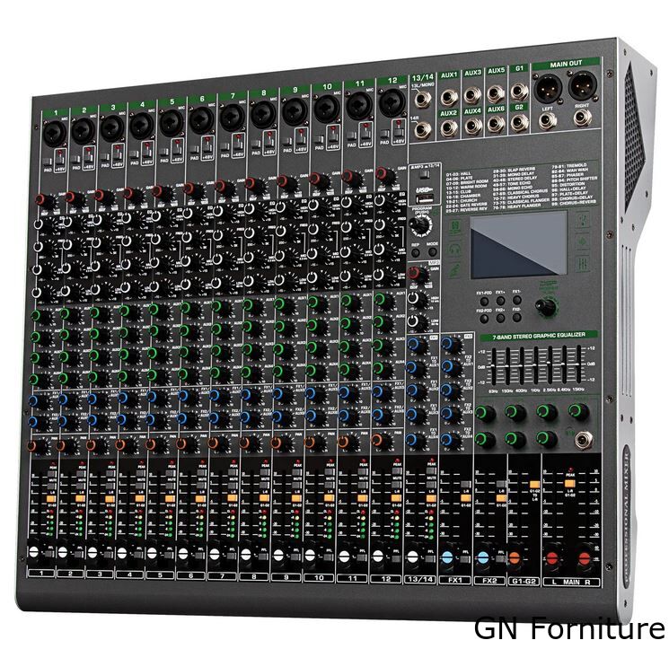 Console professionale a 14 canali progettata per performance dal vivo, studi di registrazione, installazioni fisse e broadcast. Include un doppio processore effetti DSP, equalizzatore grafico stereo a 7 bande, display multifunzione LCD e connettività completa (Bluetooth, USB, AUX, SEND/RETURN). Ogni canale è dotato di controlli dettagliati per una gestione audio avanzata, mentre l’interfaccia intuitiva consente un workflow fluido anche in ambienti complessi.