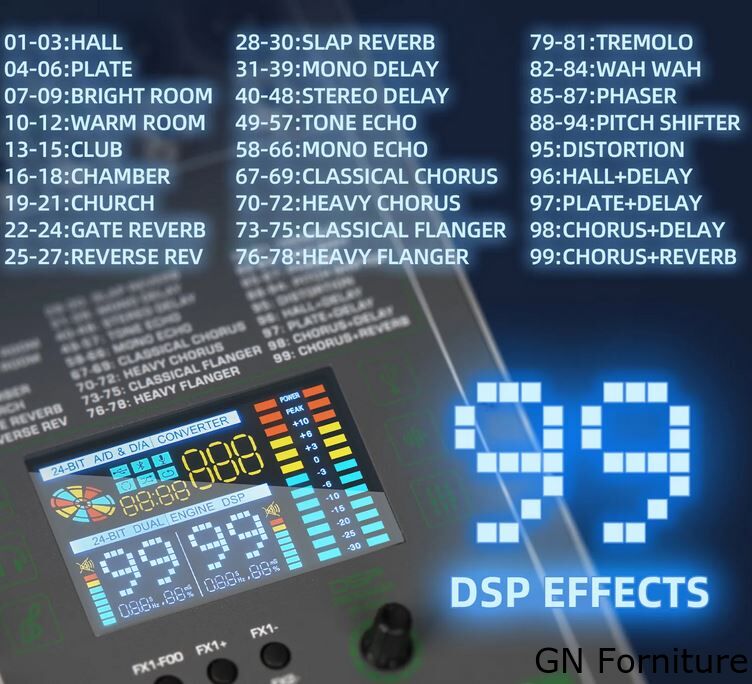 - Doppio processore DSP con 16 effetti integrati ciascuno (reverb, delay, chorus, ecc.)