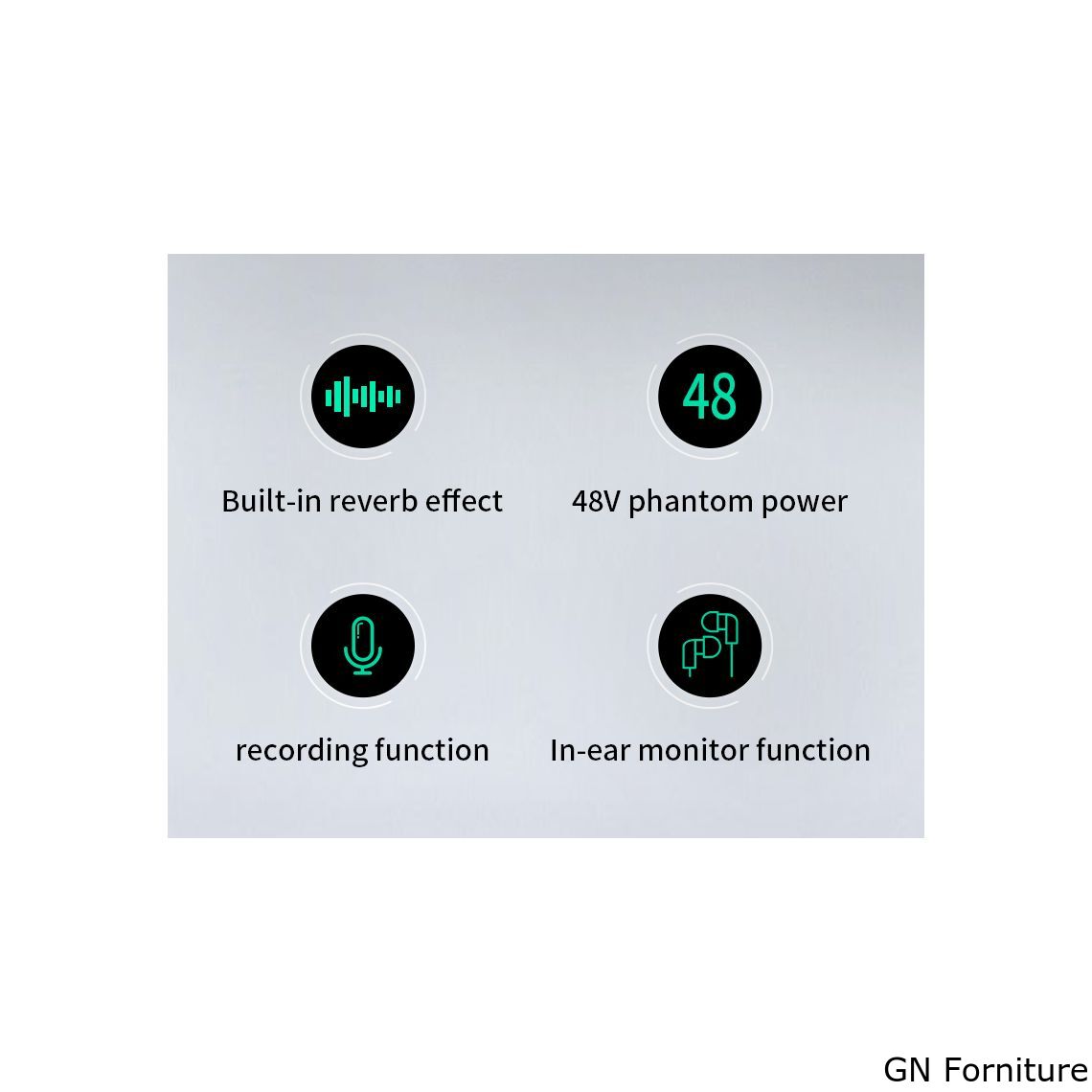 - Alimentazione phantom 48 V incorporata per microfoni a condensatore.