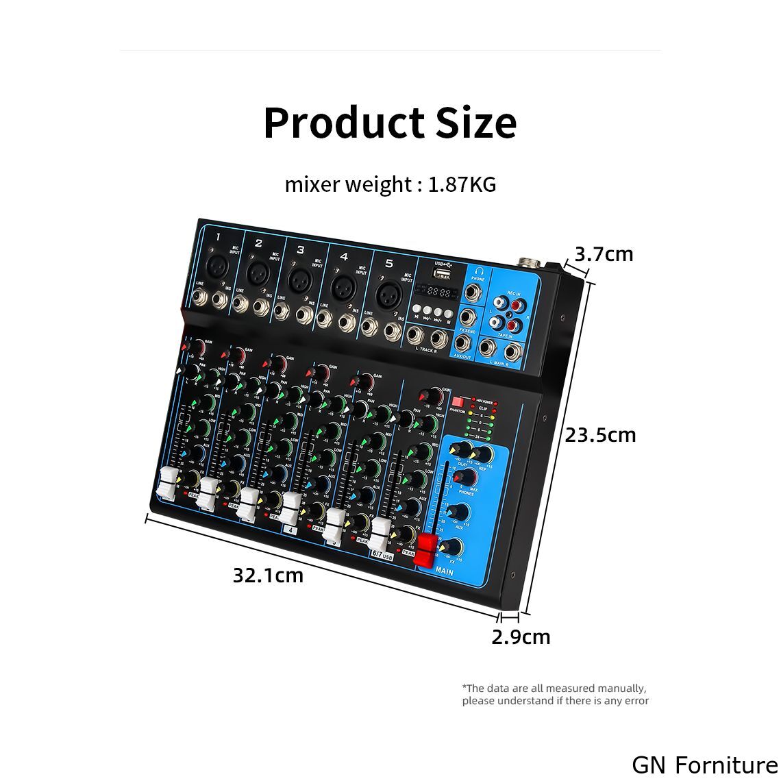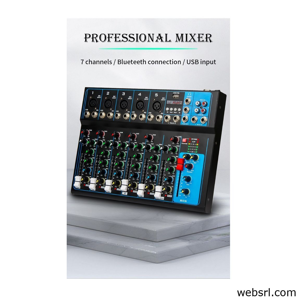 Mixer professionale 4/7 canali Bluetooth/USB/Stereo RCA