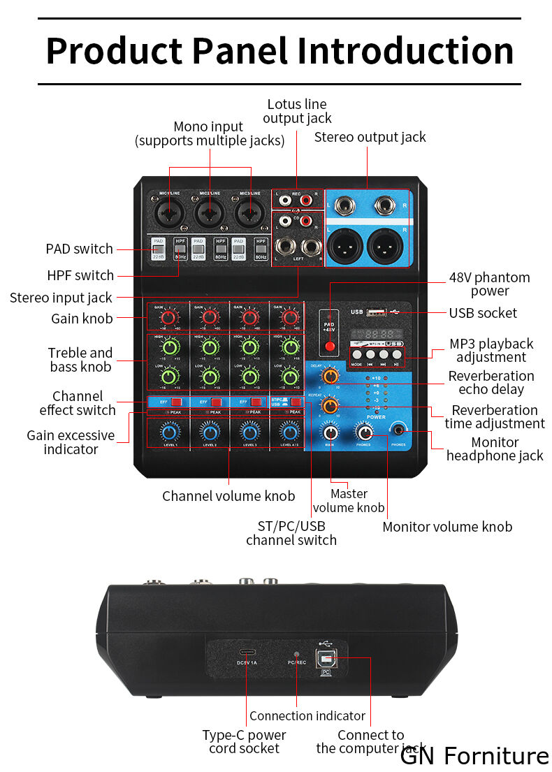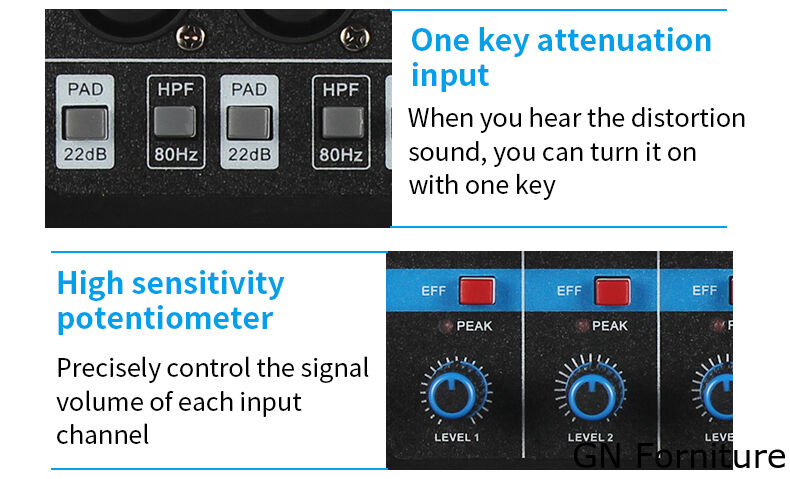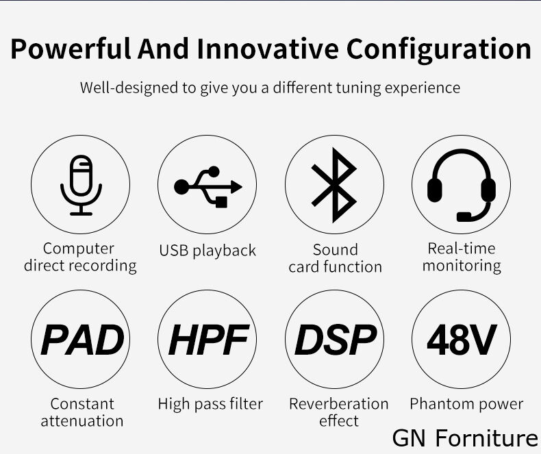 - Tutti gli ingressi microfonici adottano un preamplificatore microfonico indipendente a basso rumore.