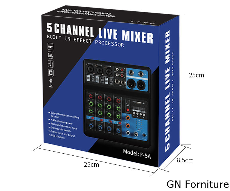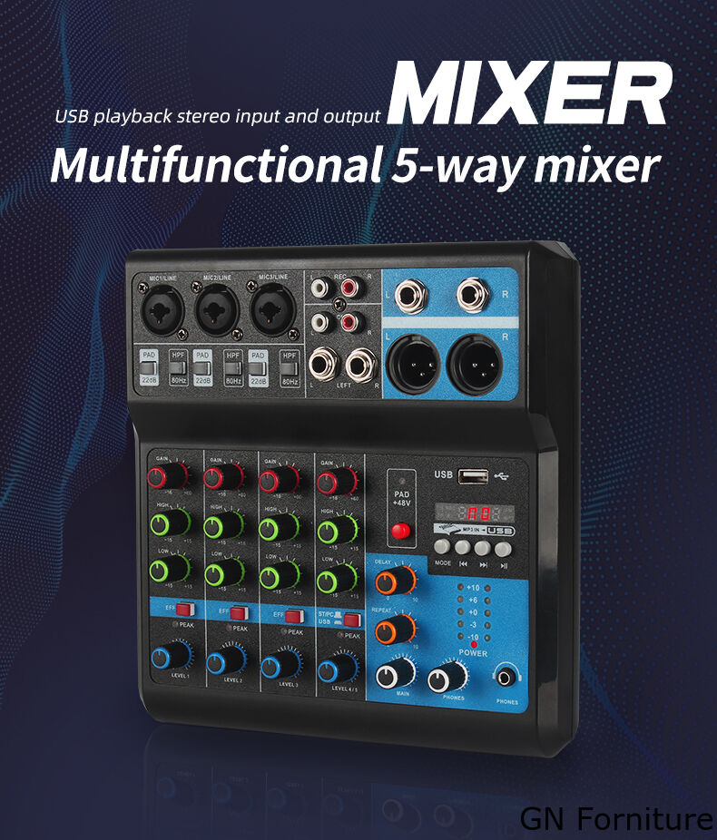 - Mixer a 5 canali con tre canali stereo e un set di canali sorgente stereo indipendenti.