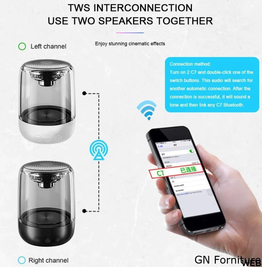 - Opzioni di coppia stereo puoi accoppiare facilmente due altoparlanti Bluetooth C7 in una coppia stereo per un suono più ampio