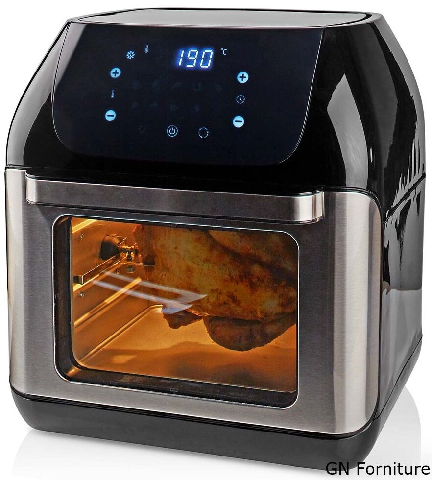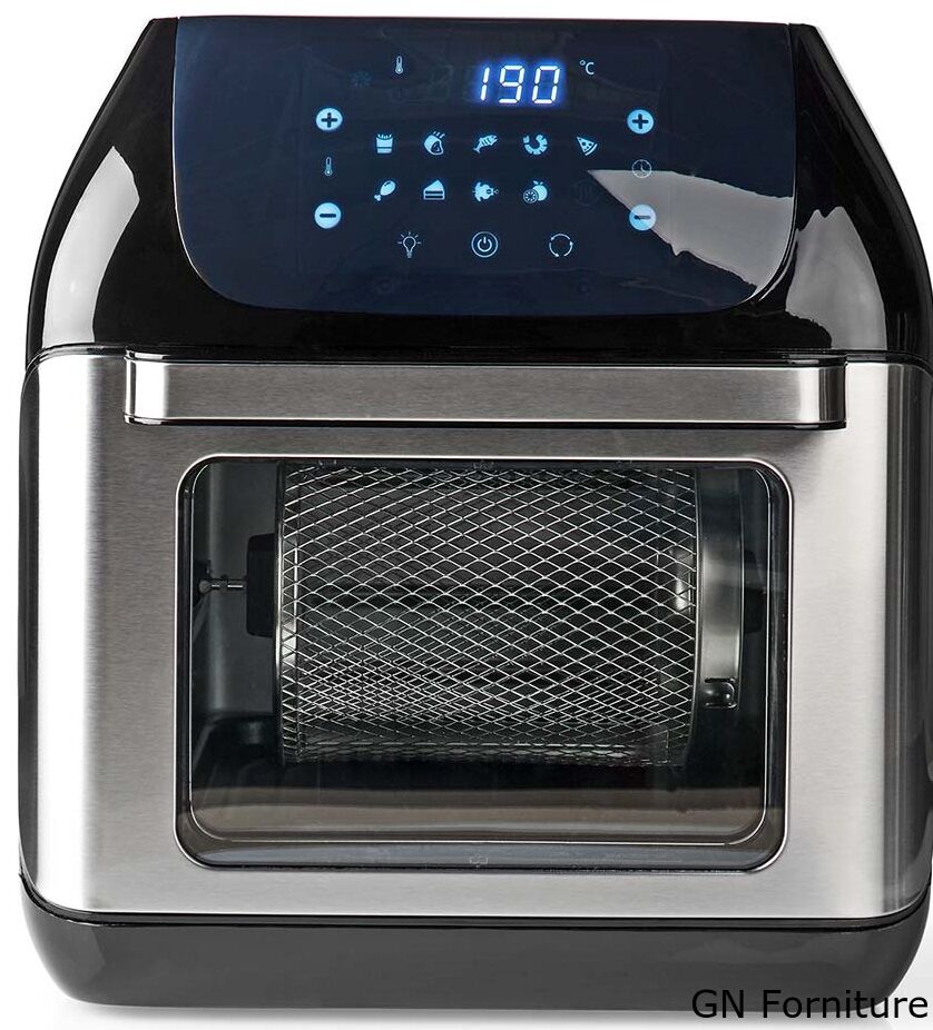 Il forno per friggere ad aria ha una capacità di 12 litri, per consentirti di preparare una grande quantità di cibo, dalla torta alla pizza e dalla carne al pesce, dai 65 ai 200 °C. Non è necessario attendere molto per avviarlo; grazie alla potenza di 1500 Watt , la friggitrice ad aria è pronta per l'uso. Grazie al display digitale con 9 programmi di cottura già impostati, la friggitrice ad aria è anche facile da usare.