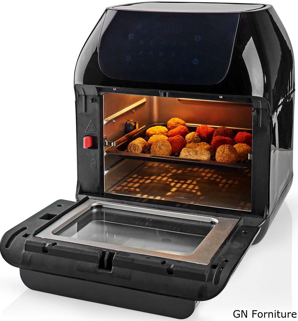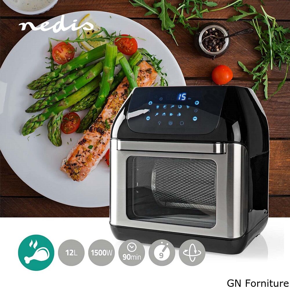 Con questo forno per friggere ad aria Nedis, è possibile preparare facilmente le pietanze più deliziose in modo sano, soprattutto perché la tecnologia di circolazione di aria calda consente di eliminare l'uso dell'olio per la preparazione di patatine, carne, pesce e verdure. Questo forno per friggere ad aria è una meraviglia della cucina multifunzionale; può grigliare, cuocere, friggere, arrostire e persino essiccare.