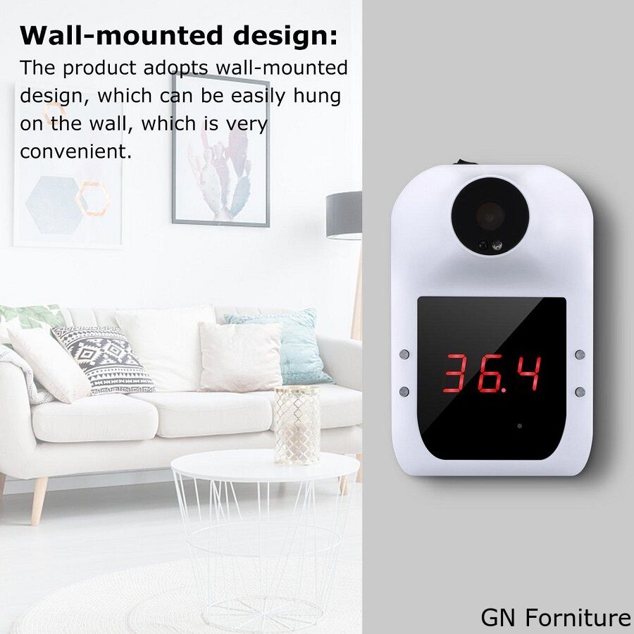 - Termometro frontale a infrarossi intelligente, non è necessario tenerlo in mano, può essere appeso con il nastro biadesivo (incluso) oppure può essere avvitato a un treppiede (non incluso)