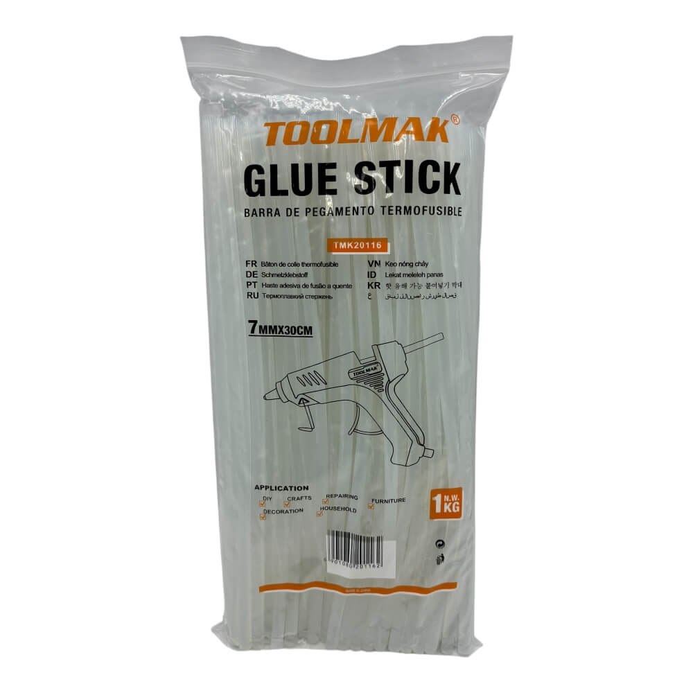 Stick di colla TOOLMAK ideali per incollaggi rapidi e pratici in ambito domestico, creativo e professionale. Compatibili con pistole per colla a caldo per stick da 7 mm, sono adatti a numerose applicazioni come fai da te, riparazioni, decorazioni e piccoli lavori domestici. La lunghezza da 30 cm li rende pratici per un utilizzo continuativo.