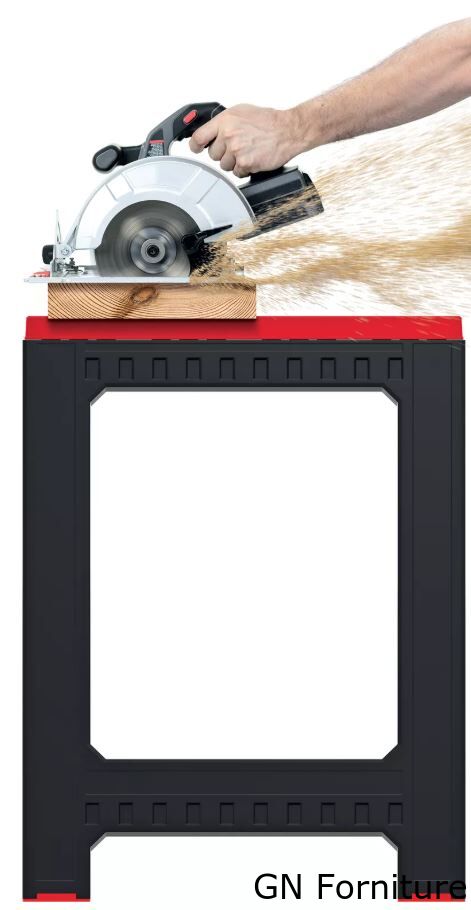 Questo cavalletto è utilizzabile anche per eefftuare tagli grazie al suo pianetto d'appoggio con la scala misurazione e l'incavo per taglio.