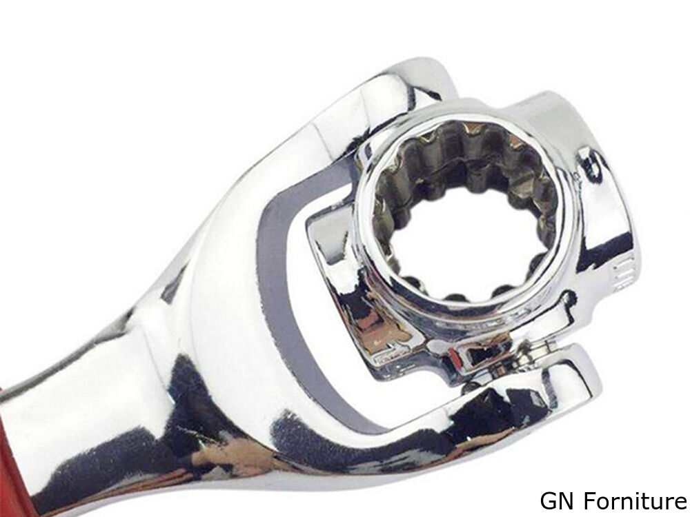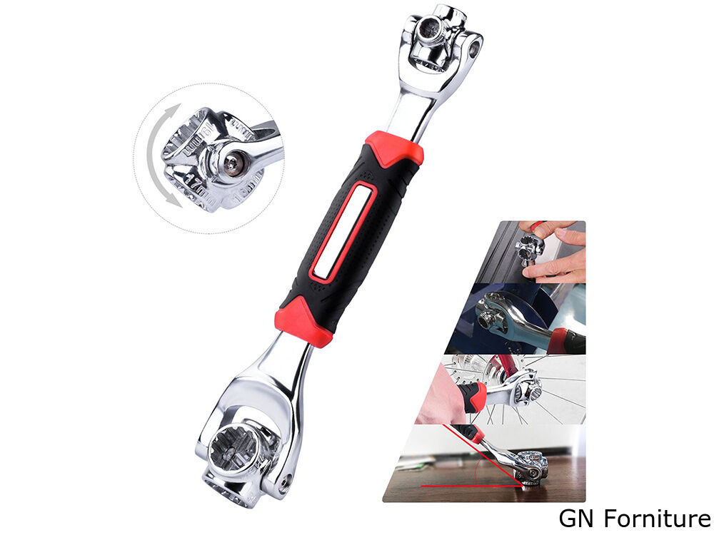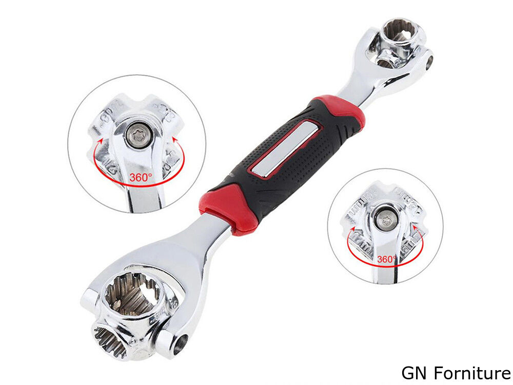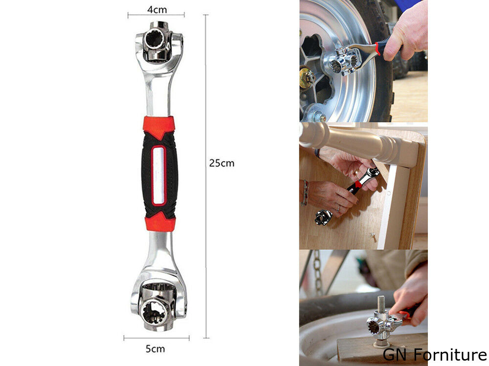 La chiave a bussola multifunzione è ideale sia per l'uso in officine professionali che per lavori domestici. Grazie alla sua versatilità, sostituisce 48 chiavi con diverse dimensioni di inserti. La testa rotante a 360 gradi consente un rapido cambio delle punte. È estremamente utile per vari tipi di riparazioni. La chiave è dotata di un'impugnatura ergonomica realizzata in materiale antiscivolo, garantendo così una presa sicura.