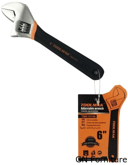 Chiave inglese regolabile da 6 pollici TOOLMAK, realizzata in acciaio al carbonio 45# con struttura a trave centrale (I-Beam) per una resistenza superiore. Dotata di impugnatura rivestita antiscivolo per comfort e controllo durante l’utilizzo.