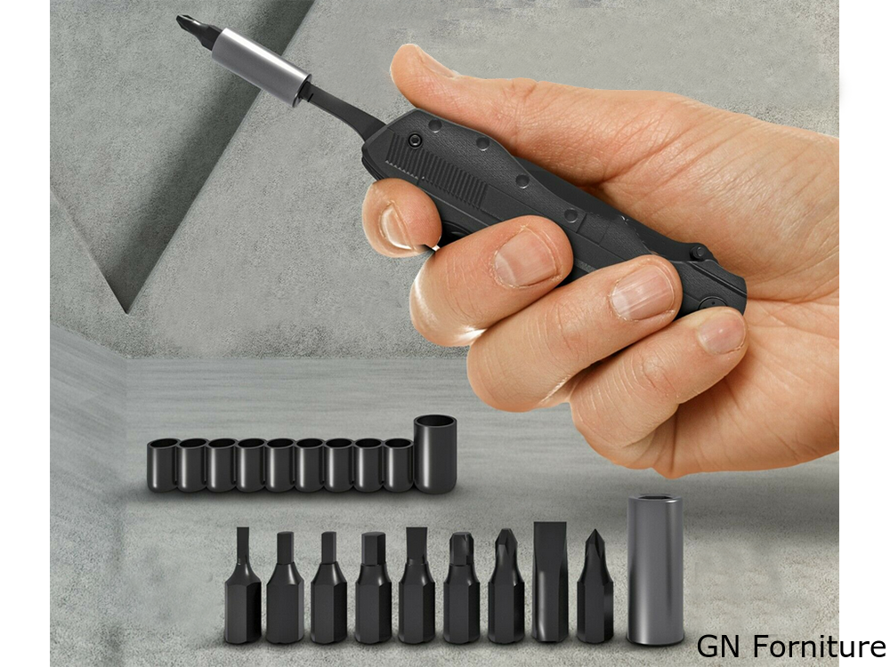 Questo pratico coltellino si rivelerà utile in qualsiasi situazione quotidiana, così come in campeggio o in officina. Il dispositivo è dotato di una gamma di utensili essenziali. È compatto.