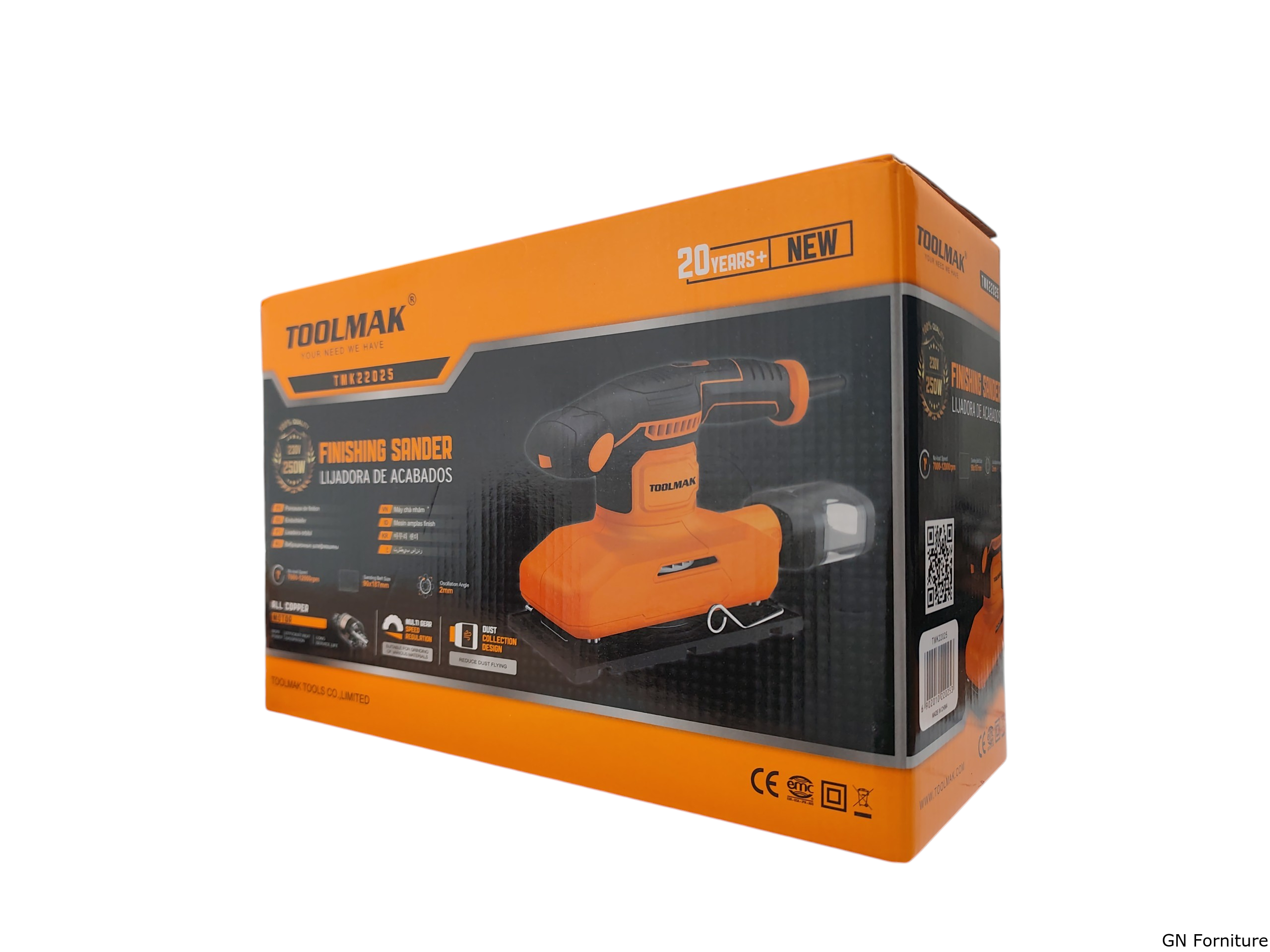 Levigatrice orbitale TOOLMAK progettata per lavori di finitura su legno, superfici verniciate e altri materiali compatibili. Grazie alla potenza da 250 W e alla velocità a vuoto variabile, consente una levigatura pratica e regolare, adatta sia a lavori di rifinitura sia a interventi di preparazione delle superfici. La struttura è pensata per offrire una buona maneggevolezza, mentre il sistema di raccolta polvere aiuta a mantenere più ordinata l’area di lavoro.
