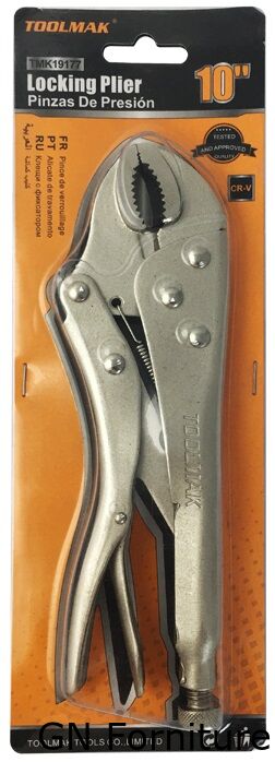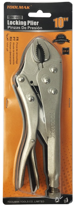 Pinza autobloccante TOOLMAK da 10", progettata per offrire una presa sicura e costante su oggetti di diverse forme e dimensioni. Strumento ideale per applicazioni meccaniche, idrauliche, automobilistiche e fai-da-te.