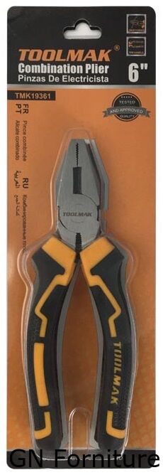 Pinza combinata TOOLMAK da 6" (150 mm), ideale per lavori elettrici, meccanici e domestici. Realizzata in acciaio al carbonio con finitura lucidata, offre taglio, presa e torsione in un unico utensile pratico e resistente.