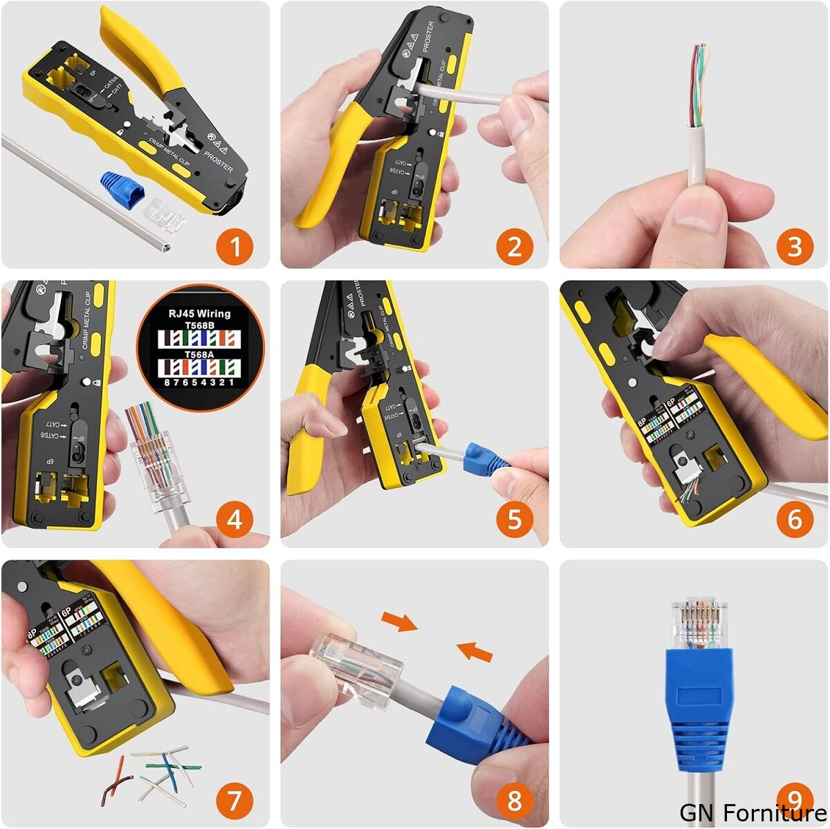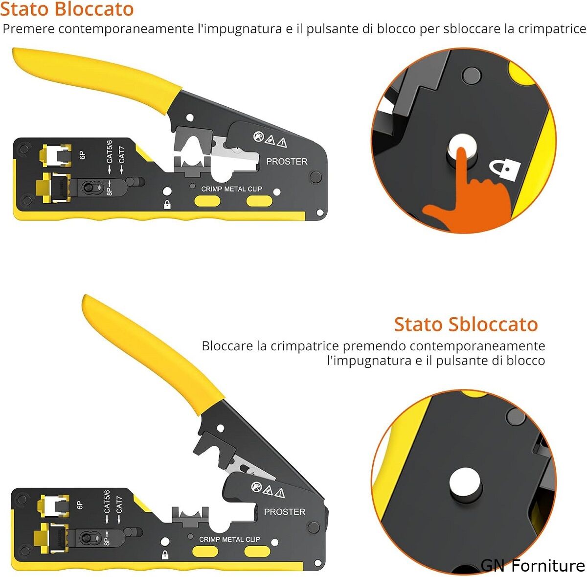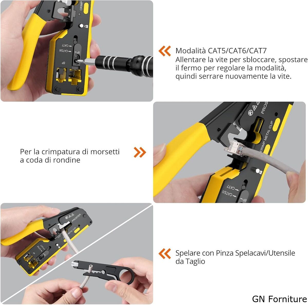 Pinza crimpatrice RJ45 pass through CAT5 CAT6 CAT6A CAT7 gialla