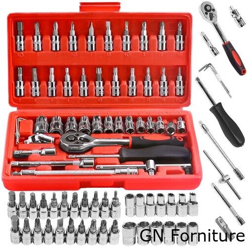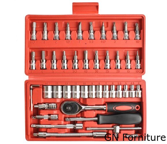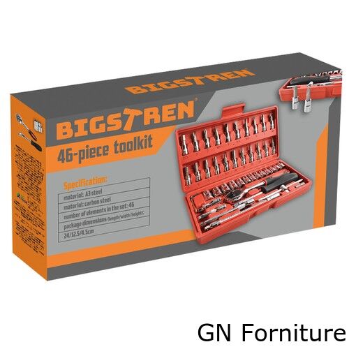 Il set composto da 46 elementi è confezionato in una pratica valigetta. La valigetta consente una conservazione sicura, ogni elemento ha il suo posto, quindi trovare la bussola o la chiave giusta non sarà un problema e il tutto non si perderà.