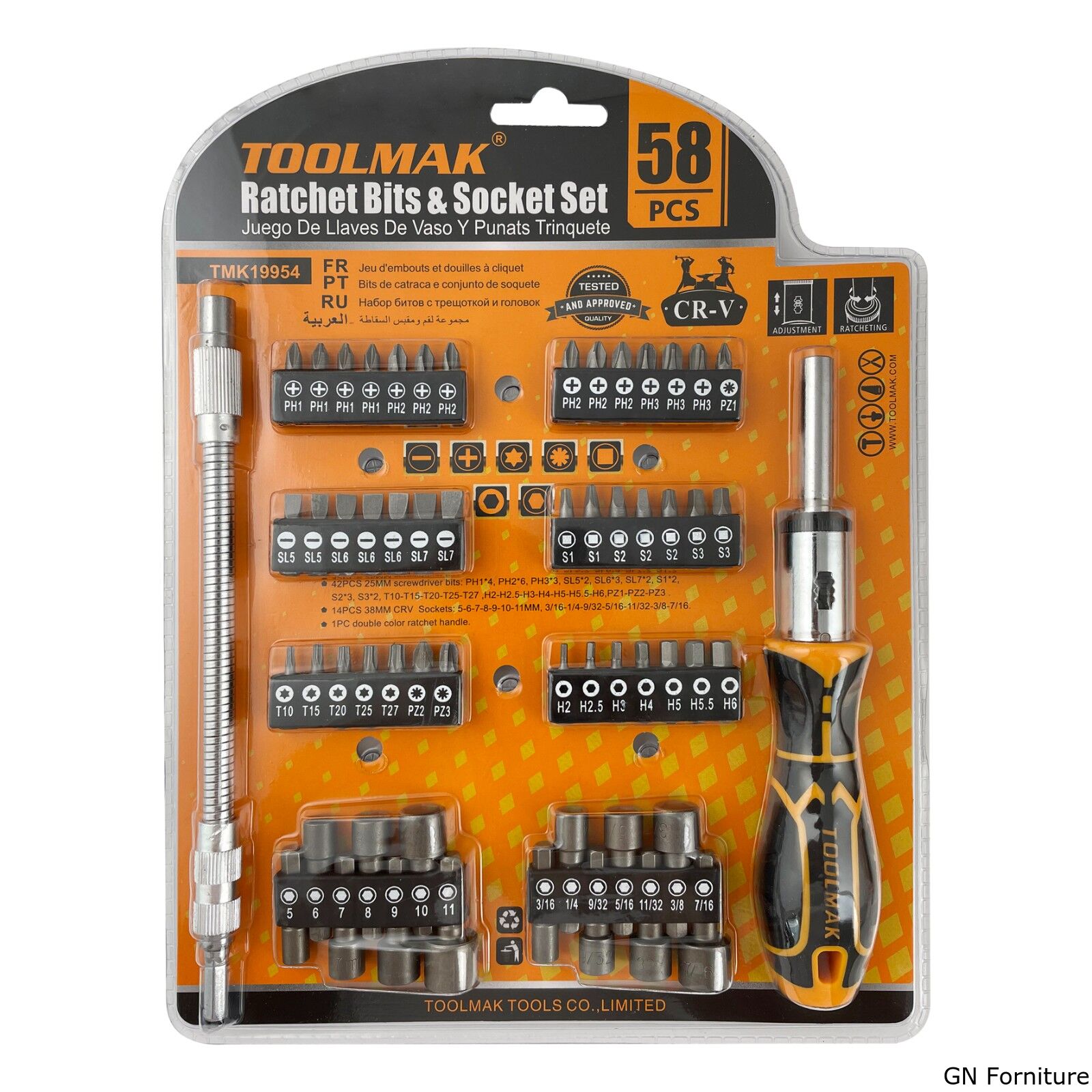 Il set Toolmak Ratchet Bits & Socket Set è una soluzione completa e professionale per avvitature e serraggi di precisione. Tutti i componenti sono realizzati in acciaio al cromo vanadio (CR-V) di alta qualità, con finitura sabbiata, che garantisce elevata resistenza, solidità e lunga durata anche in caso di utilizzo intensivo.