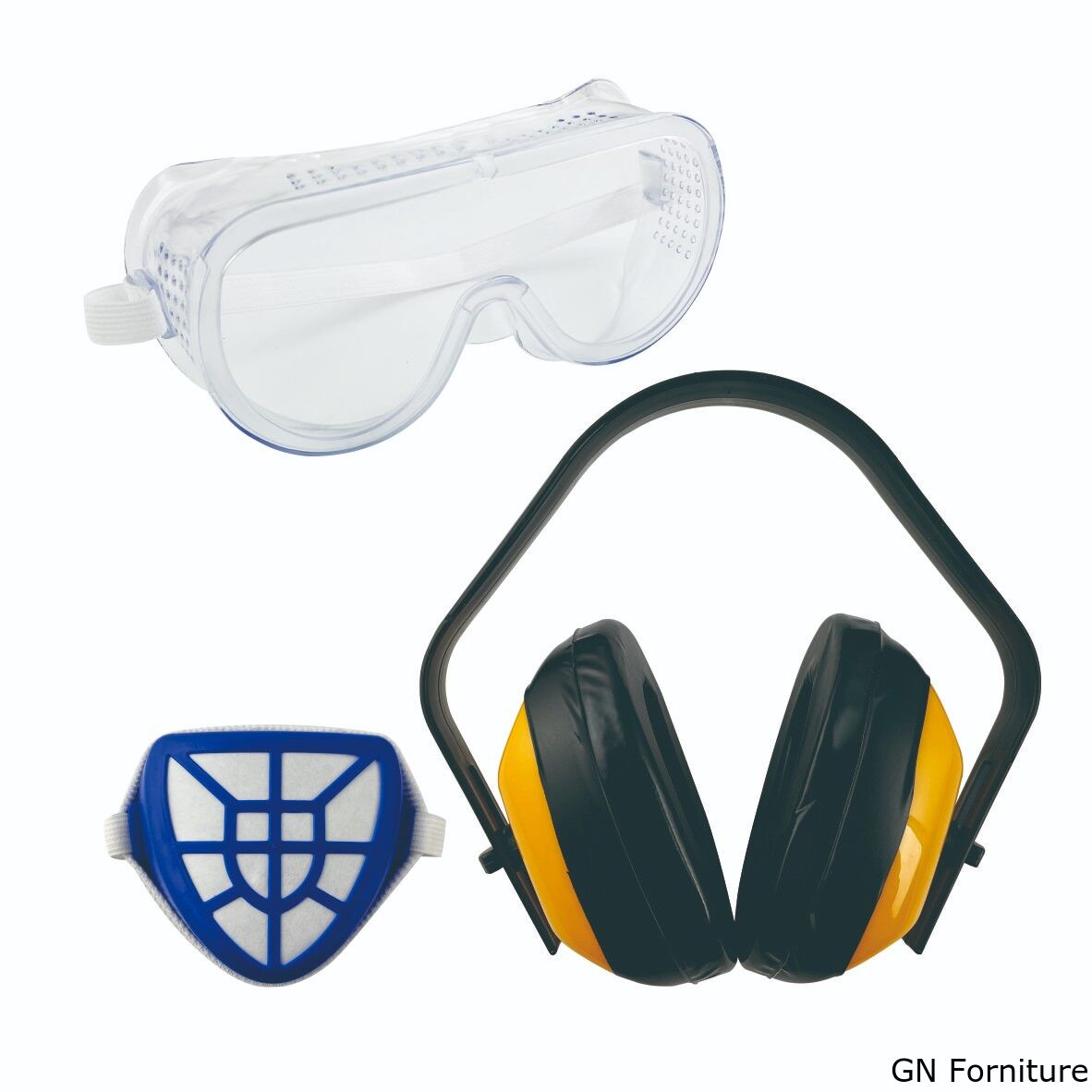 Set di dispositivi di protezione individuale pensato per garantire sicurezza e comfort durante lavori di manutenzione, bricolage, officina e cantiere. Una soluzione pratica e completa per la protezione di occhi, vie respiratorie e udito.