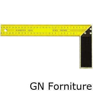 Squadra per falegnami con manico in ghisa, dispositivo bisellatura, munita di 2 scale, acciaio temperato.Lunghezza 30cm.