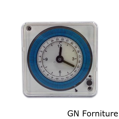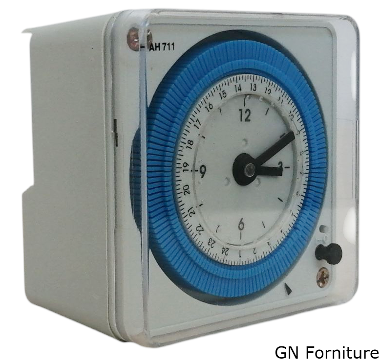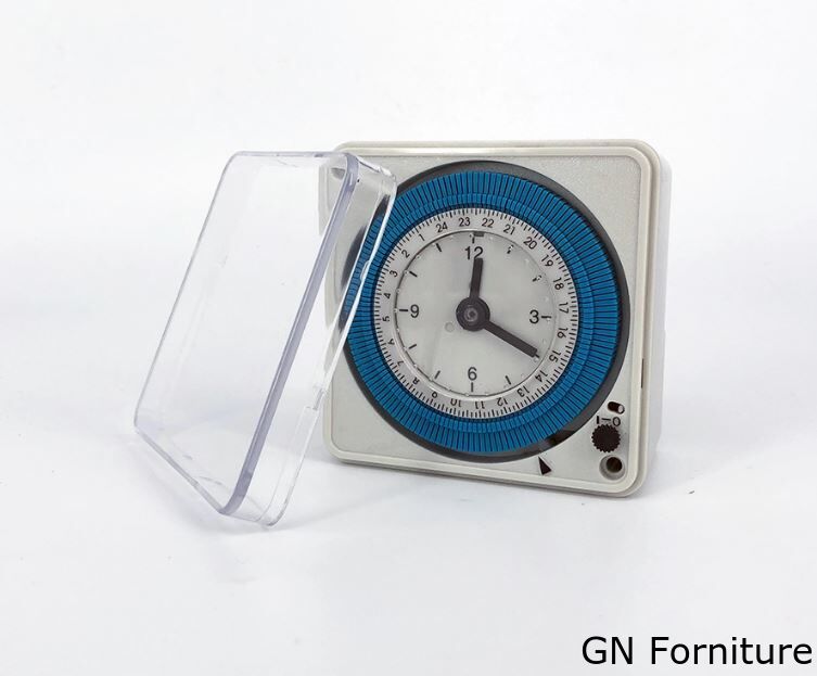 Timer analogico meccanico per la programmazione giornaliera di accensione e spegnimento di dispositivi elettrici. Ideale per luci, impianti di irrigazione, depuratori per piscine, sistemi di ventilazione e altri apparecchi che necessitano di automazione temporizzata.