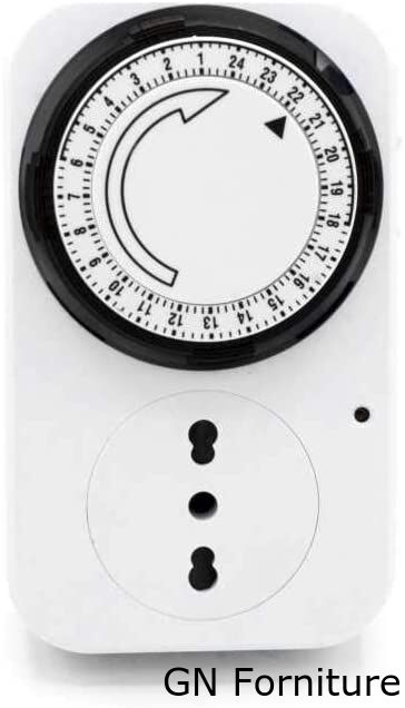 Qualsiasi elettrodomestico può essere connesso tranquillamente al TIMER. In più, grazie a delle levette che circondano l'orologio, si può fare in modo che l'accensione e lo spegnimento avvengano svariate volte in una sola giornata. Una volta impostato, l’orario resta in automatico fino ad eventuale cambiamento manuale.