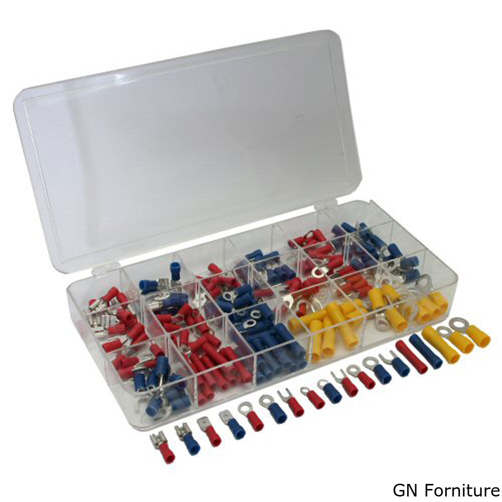 Terminali preisolati per cavi elettrici, di diverse misure, ben 18, racchiuse in un contenitore in plastica, cosi da portarli sempre con se e usarli per ogni evenienza.