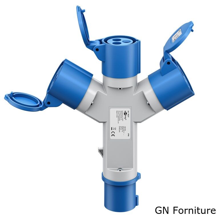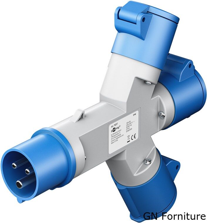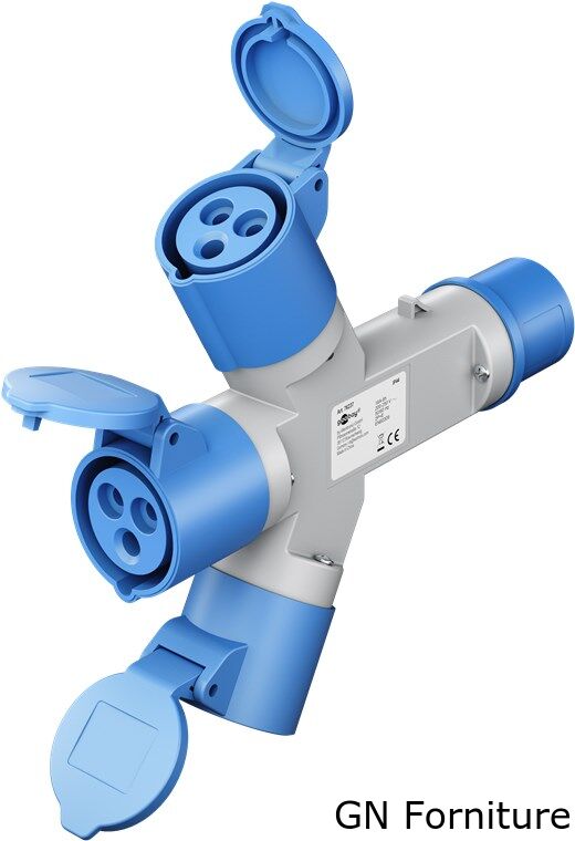 Adattatore CEE blu da campeggio con spina 16A e 3 prese CEE 230V IP44