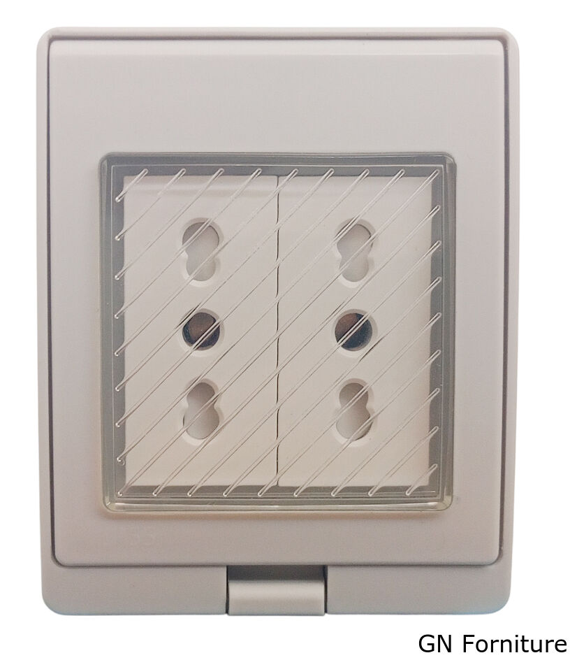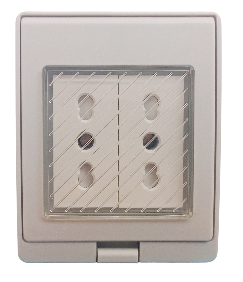 Scatola da parete con grado di protezione IP55, dotata di 2 prese bipasso compatibili 10A e 16A. Progettata per uso esterno o in ambienti umidi, offre una protezione efficace contro polvere e spruzzi d’acqua.