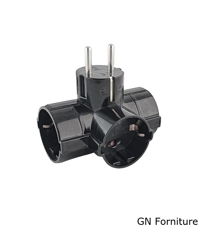 La struttura compatta consente il collegamento stabile di tre spine con messa a terra, offrendo elevata capacità di carico e lunga durata.