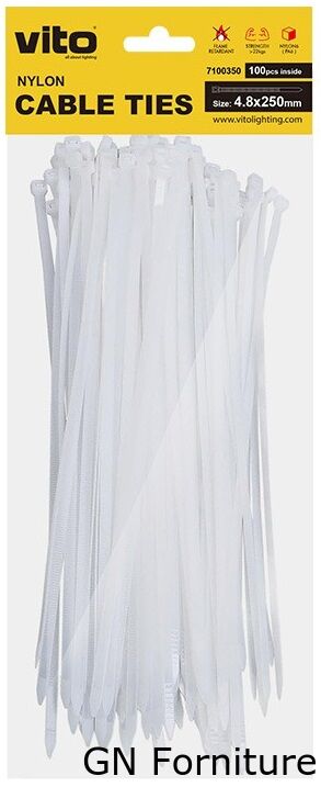 FASCETTE PER CAVI VITO PLASTICK realizzate in NYLON6 (PA6) di colore NERO con protezione UV e test di tensione di 22 kg. Le dimensioni di una fascetta sono 4.8X250 mm. Facile installazione manuale.