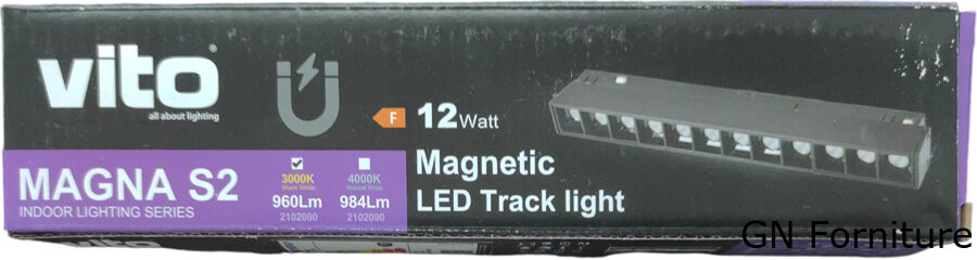 ILLUMINAZIONE A BINARIO serie MAGNA con corpo in alluminio, prestazioni di illuminazione di 960 Lm e una lunga durata di 25.000 ore. Questo modello da 12 W include LED da 3000 K (BIANCO CALDO) con un angolo di illuminazione di 36 gradi, in base alla flessibilità di illuminazione desiderata.