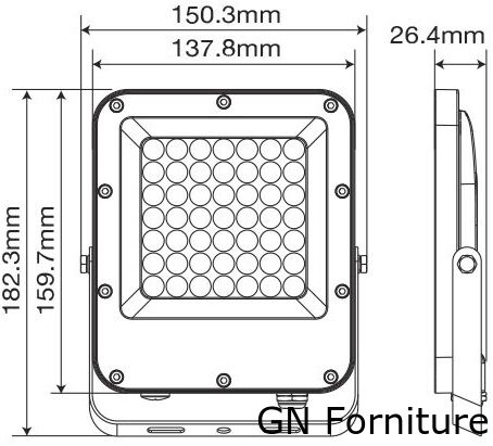Il diffusore in policarbonato trasparente protegge l’ottica e assicura una distribuzione uniforme della luce naturale 4000K. La staffa in acciaio profilato verniciata consente un montaggio sicuro e orientabile. Il grado di protezione IP65 rende il faro adatto a installazioni in ambienti esterni esposti a polvere e agenti atmosferici.