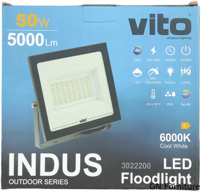 Questo modello da 50 W include LED da 6000 K (BIANCO FREDDO) con un angolo di illuminazione 120°.