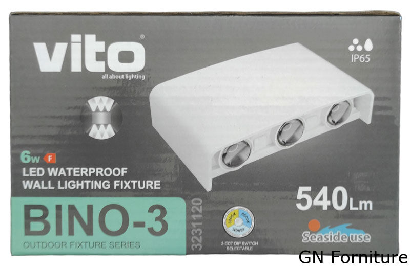 BINO 3 è un applique per installazione a parete, dotato di LED SMD SANAN. Predisposizione con interruttore a 3 posizioni per variare la temperatura colore tra 3000K, 4000K o 6000K. Destinato all'installazione in superficie. Corpo in policarbonato verniciato bianc. Diffusore in policarbonato.