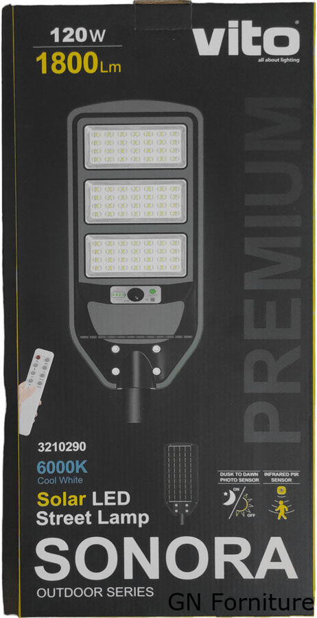 Lampione solare LED 120W 1800lm 6000k luce fredda Vito