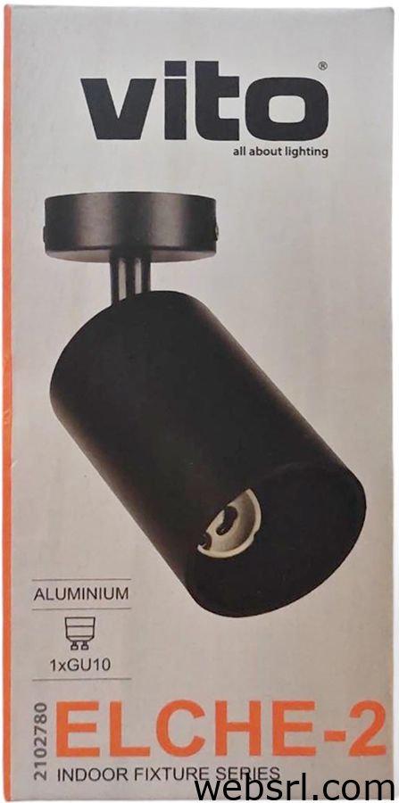 Faretto da soffitto a montaggio superficiale progettato per illuminazione d’accento in ambienti interni. Il modello ELCHE-2 utilizza una lampadina GU10 tipo PAR16 (non inclusa) e offre orientamento regolabile per dirigere il fascio luminoso con precisione.