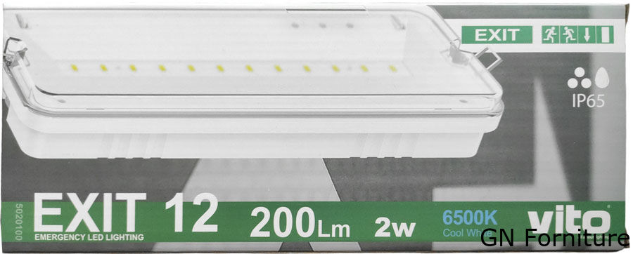 EXIT 12L è un apparecchio di emergenza ricaricabile dotato di LED SMD. Può essere utilizzato per il montaggio su superficie. È impermeabile, IP65, il che significa che può essere utilizzato all'aperto. 1 livello di illuminazione: 100% 160Lm.