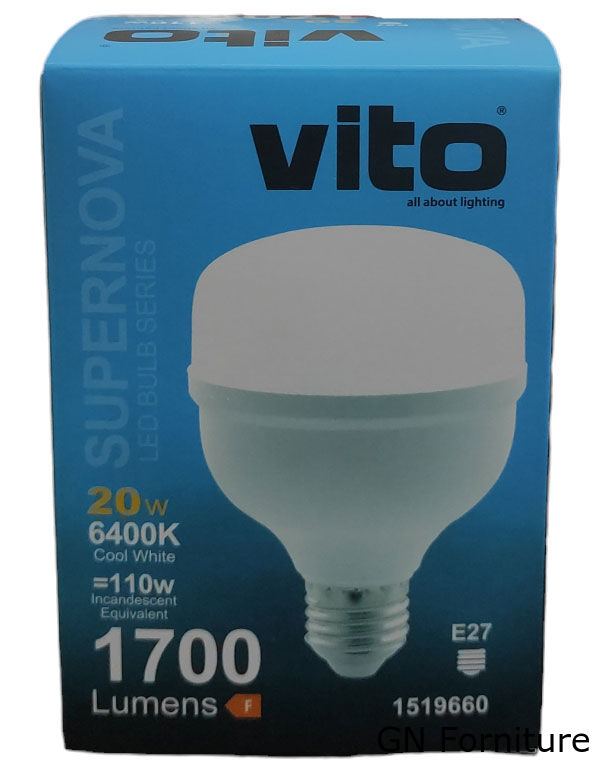 Questo modello da 20 W include LED 6400 K (BIANCO FREDDO) e attacco E27 con un angolo di illuminazione di 270° come flessibilità di illuminazione desiderata.