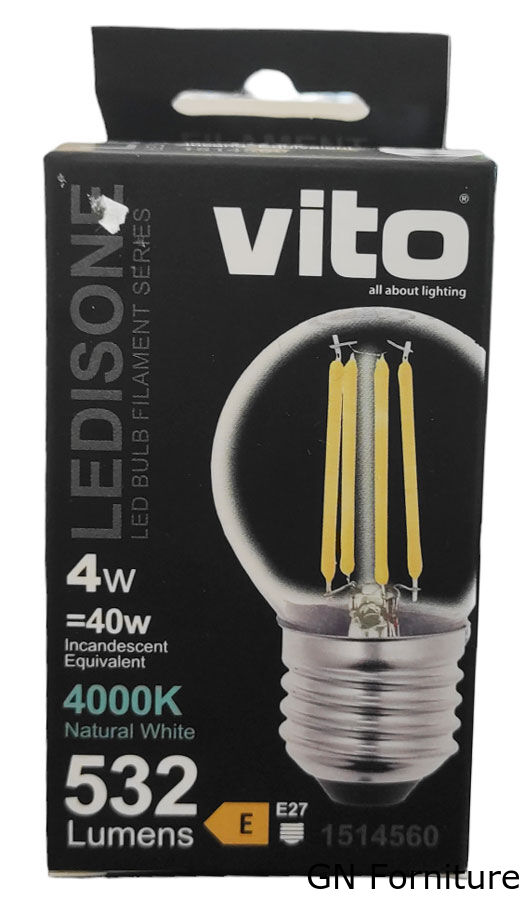 Questo modello da 4 W include LED da 4.000 K (BIANCO NATURALE) e un attacco E27 a un angolo di illuminazione di 360°.
